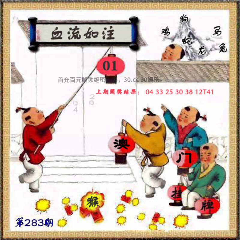 284期马会传真: 今期生肖四九开,一二三头好玄机。单数有奖红也是,六宮羅袖一時招。一路风尘出乾坤,速胜能人高高上。虎入平阳受犬欺,想见四五除九码。 【凶相毕露】 综合:龙牛羊兔鸡蛇虎狗 |